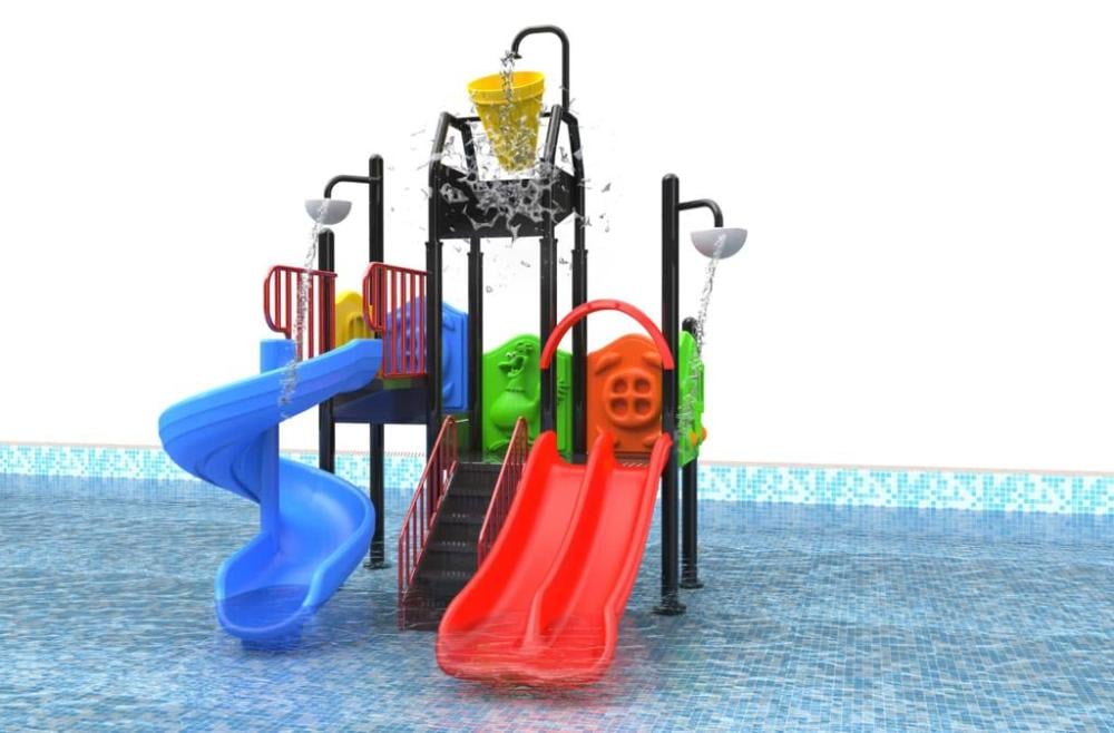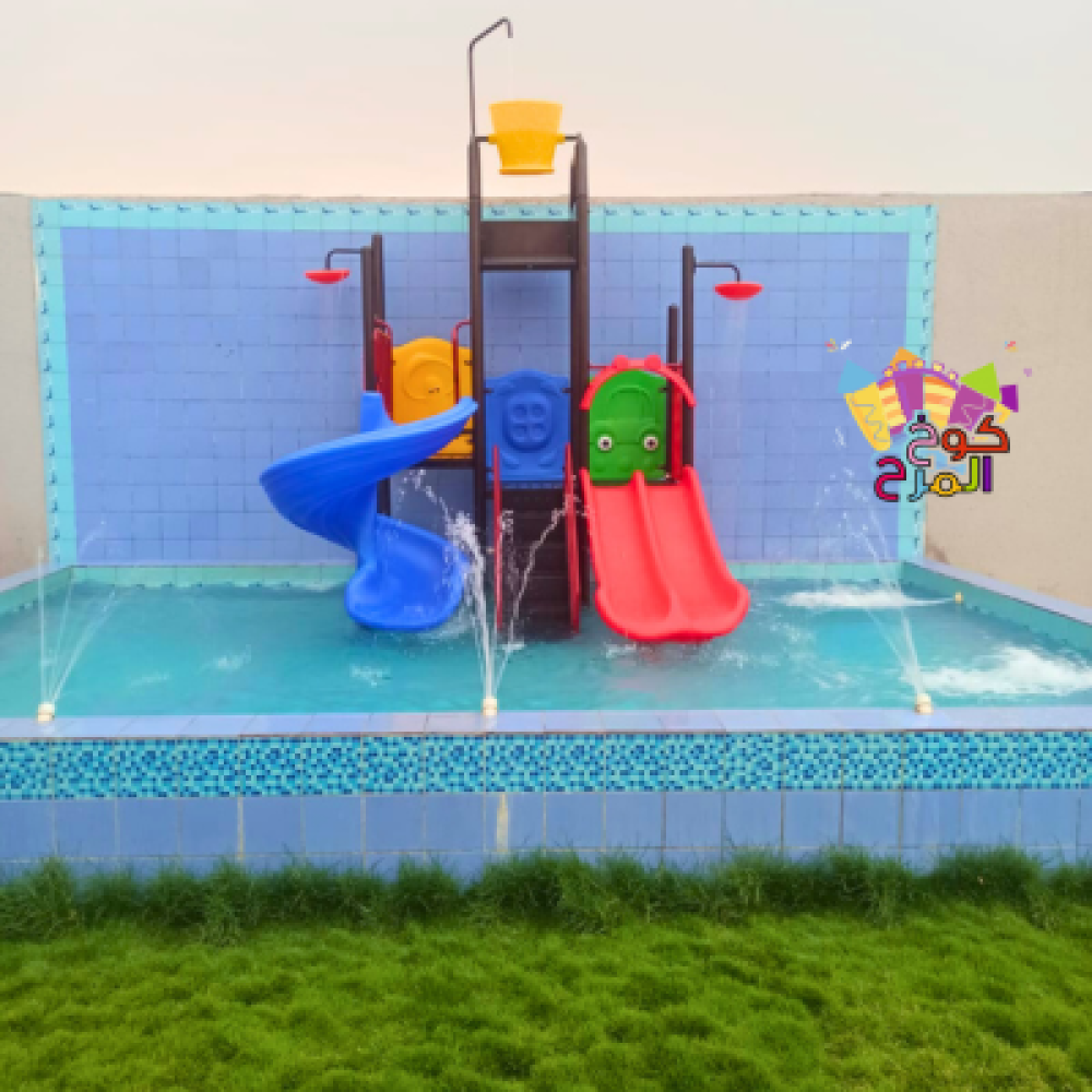 5- تجربة لعب مائية متكاملة: تجمع بين الزحاليق، الدلاء المائية المتحركة، ورشاشات المياه.